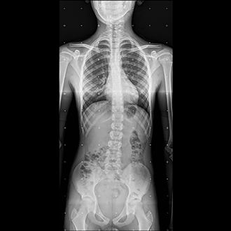 The x-ray of intended area, viz. whole spine or whole leg are taken together and stitched and printed onto a single film.